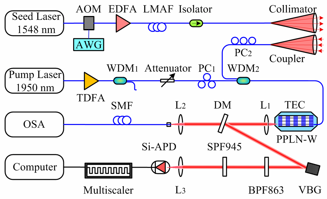 Fig. 1. Modules of the quantum upconversion wind and visibility lidar.